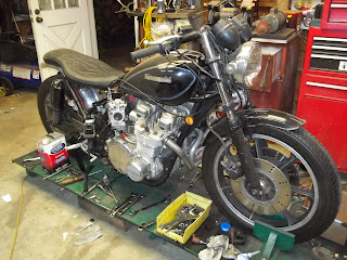 Well my camera took a shit so I haven't been keeping up with my antics of late. I have been busy though. Turns out the Turbo kit I had didn't actually fit my KZ, I suspect it was made for a Suzuki, so I had to make a few adjustments and make a few pieces. I also was missing an intake manifold and all the gasketing along with all the oil and drainage lines for the turbo itself. I had to drill and tap the oil galley next to the oil pressure sensor and modify the hole size to force more oil to the turbo and a little less to the top end, like plugging the main in smallblock chevy to send more to the crank and less to the rockers.
